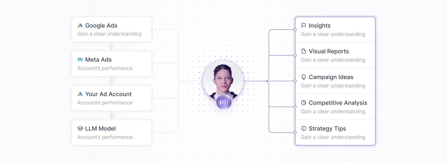 Experience seamless, real-time communication with your AI Marketing Agent. Ask questions, receive instant feedback, and get interactive assistance tailored to your Meta and Google ads. From ad performance to targeting and competitor insights, let your AI Agent guide you every step of the way.